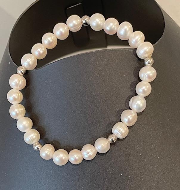 PARURE COLLIER et BRACELET PERLES EAU DOUCE 08mm + BOULES ARGENT 925%°