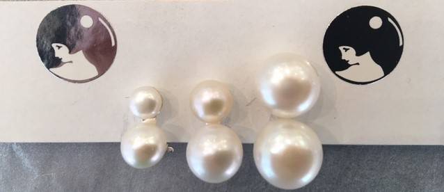 CLIPS DOUBLES ARGENT PERLES EAU DOUCE BOUTONS 11&12mm BLANC