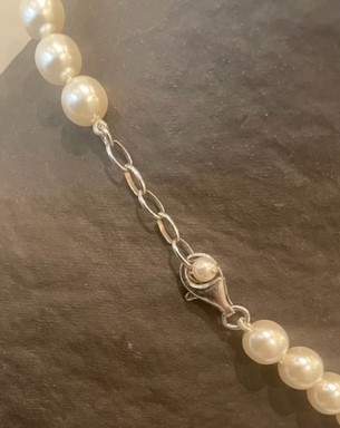 COLLIER 40cm PERLES de BOHEME BLANC de qualité STH 08mm avec des Noeuds Fermoir AD