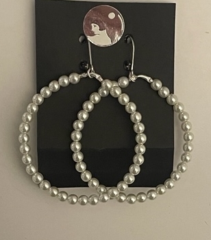 CREOLES N°51 DORMEUSES TOKYO ARGENT 925°%+ANNEAU ( en biais, de profil ) diamètre 42cm PERLES UREA 04mm
