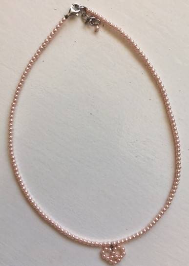 PARURE COEUR PERLES UREA ROSE