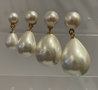 PUCES TIGES DROITES et FERMOIRS en ARGENT DORE BOUTONS PERLES d' EAU DOUCE 09mm + GROSSE POIRES en POUDRE de PERLES LUSTREE 16x21mm