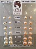 PUCES ARGENT BOUTONS 3/4 de 06mm PERLES EAU DOUCE BLANC